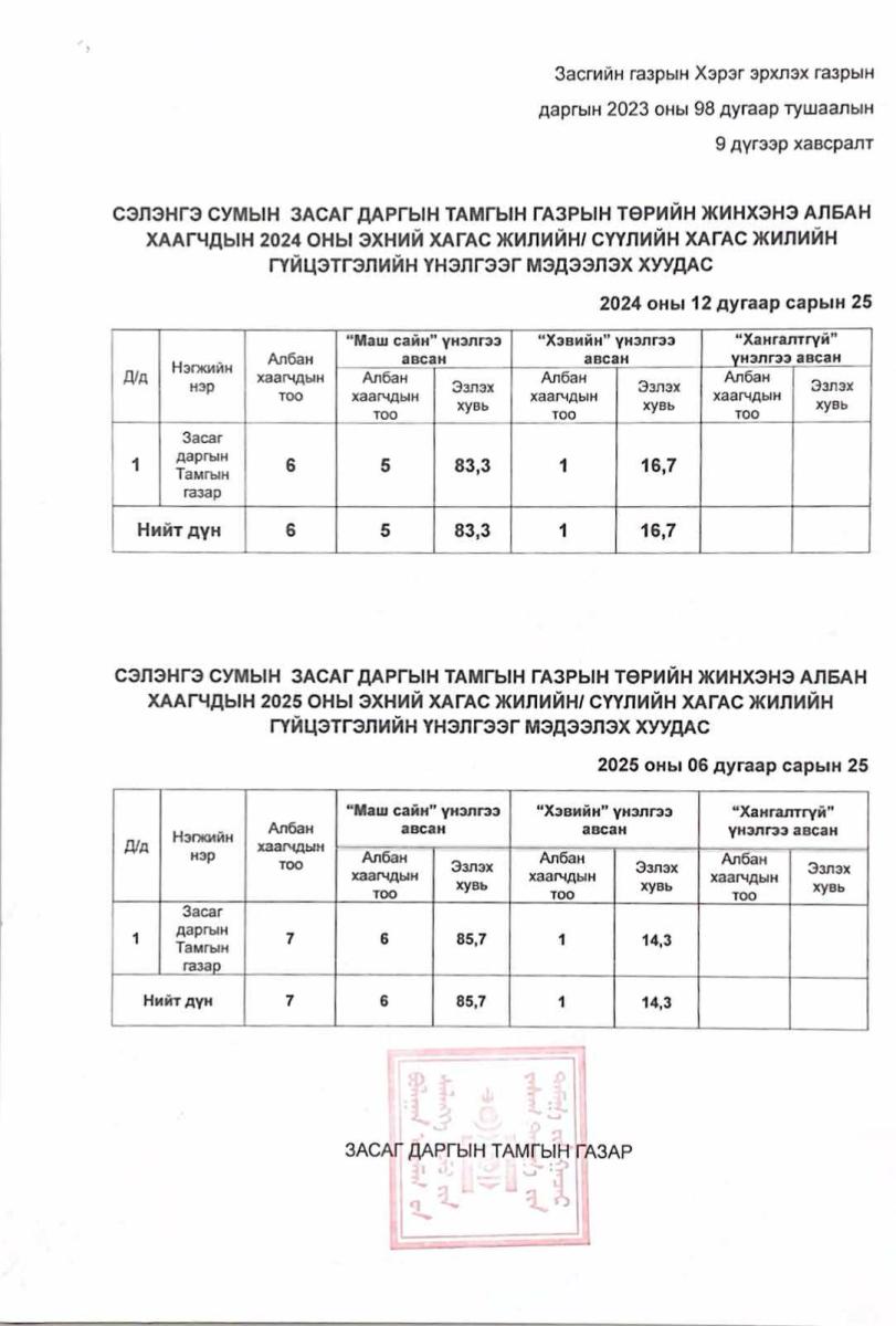 Сүүлийн хагас жилийн гүйцэтгэлийн үнэлгээ