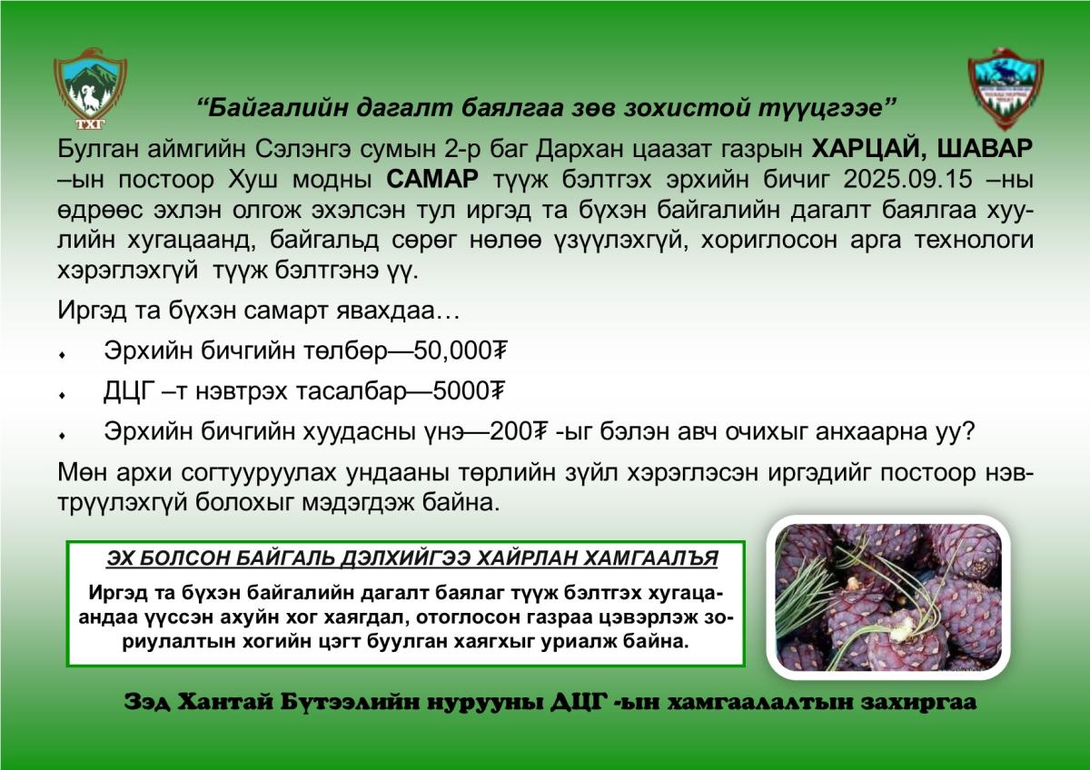 "Байгалийн дагалт баялгаа зөв зохистой түүцгээе