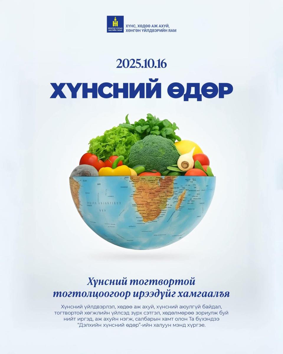 ЭРХЭМ ХҮНДЭТ СЭЛЭНГЭ СУМЫН ИРГЭД, ААНБ, САЛБАРЫН ХАМТ ОЛОН ТАНАА: Хүнсний үйлдвэрлэл, хөдөө аж ахуй, хүнсний аюулгүй байдал, тогтвортой хөгжлийн үйлсэд зүрх сэтгэл, хөдөлмөрөө зориулж буй та бүхэндээ "ДЭЛХИЙН ХҮНСНИЙ ӨДӨР"-ийн мэндийг дэвшүүлье. Хүндэтгэсэн: ЗДТГ-ын хамт олон