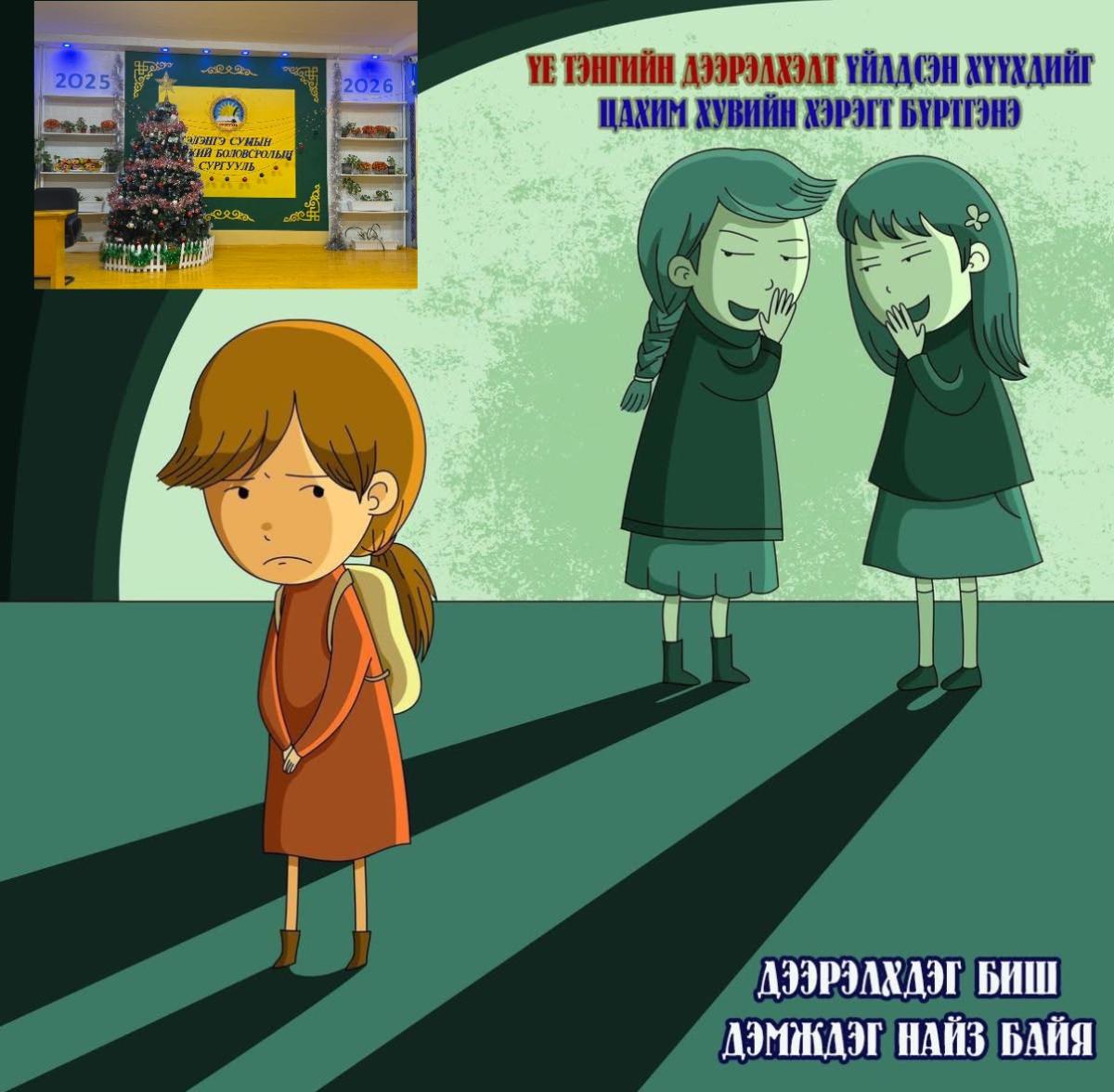 ДЭЭРЭЛХДЭГ БИШ ДЭМЖДЭГ НАЙЗ БАЙЯ ҮЕ ТЭНГИЙН ДЭЭРЭЛХЭЛТ ҮЙЛДСЭН ХҮҮХДИЙГ ЦАХИМ ХУВИЙН ХЭРЭГТ БҮРТГЭНЭ.
