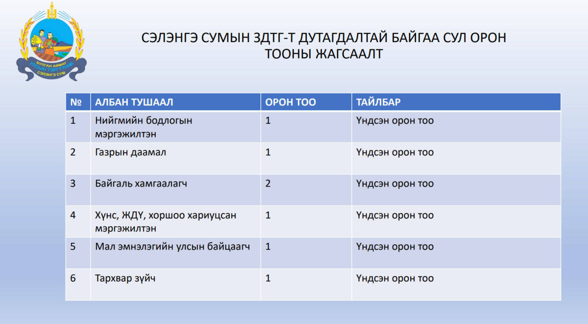ЗДТГ-ын сул орон тооны мэдээлэл