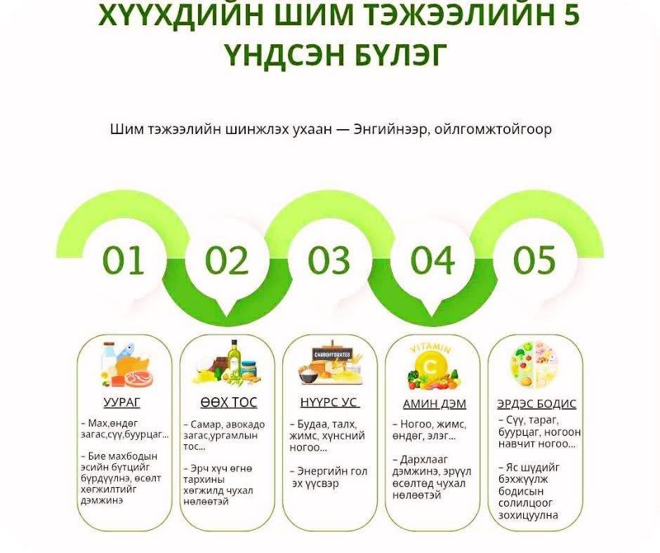 "Шим тэжээлийн боловсрол" аяны хүрээнд "Цэцэрлэгийн насны хүүхдийн хоол"-д орох 5 бүлэг хүнсийг танилцуулж байна.